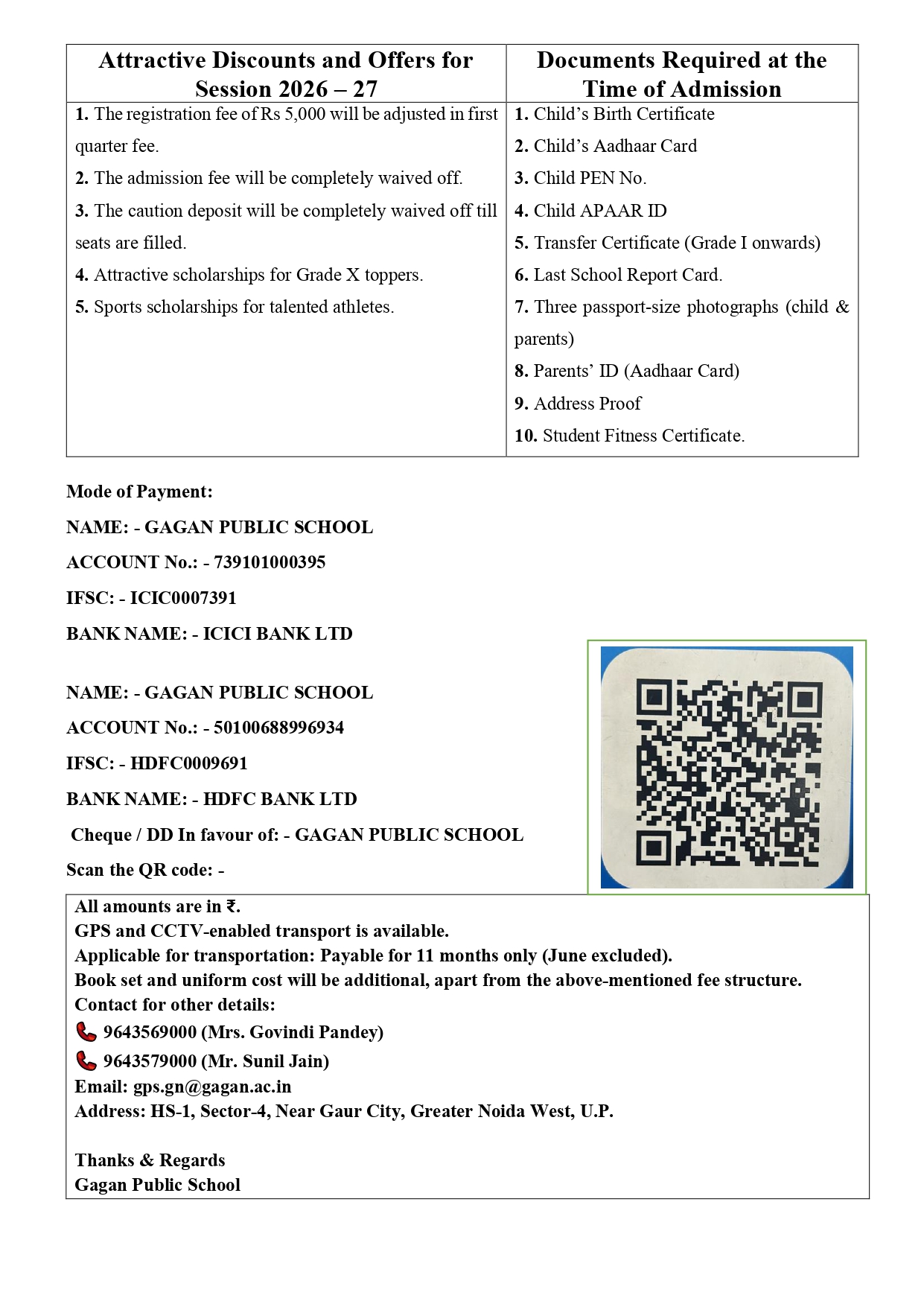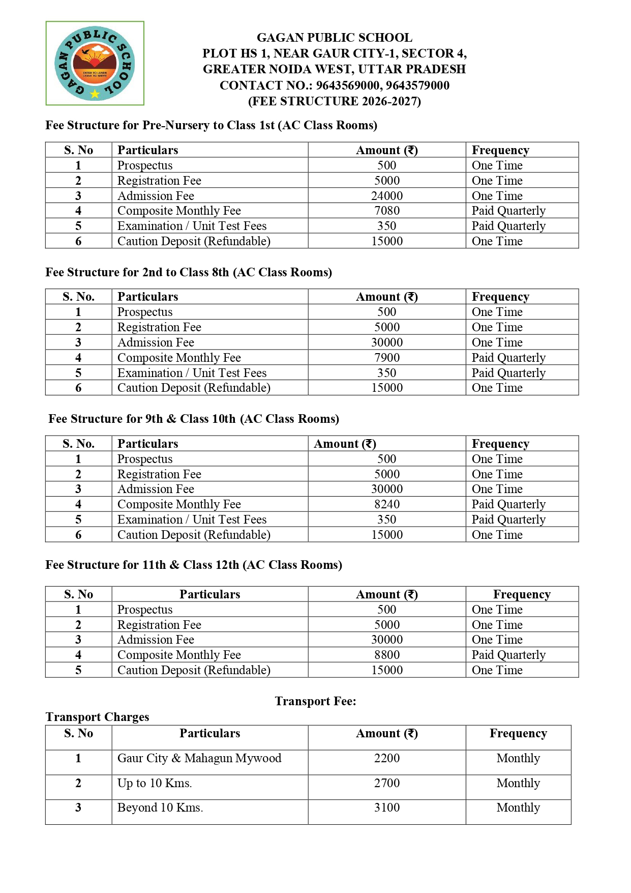 Fee Structure For Academic Session 2026-27